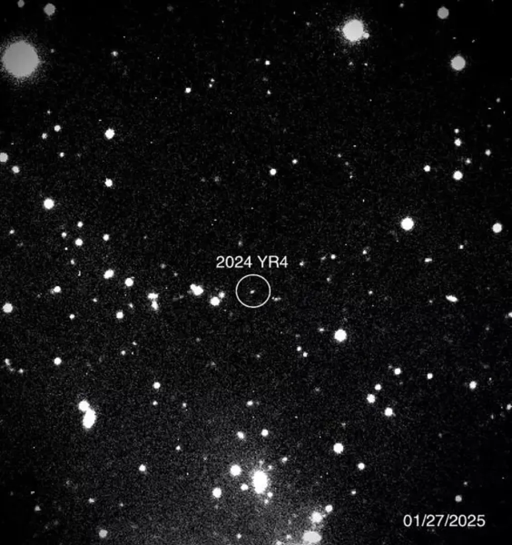 | Image fournie par la NASA le 31 janvier 2025 montrant l'astéroïde 2024 YR4 tel qu'il a été observé par le télescope Magdalena Ridge à l'Institut de technologie du Nouveau Mexique, le 27 janvier. |