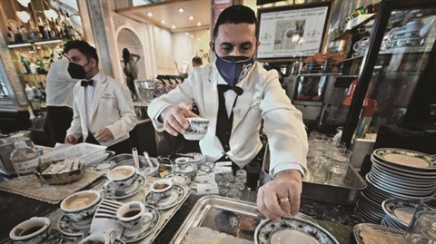 | Un serveur prépare des expressos au café Gambrinus de Naples, en Italie. |