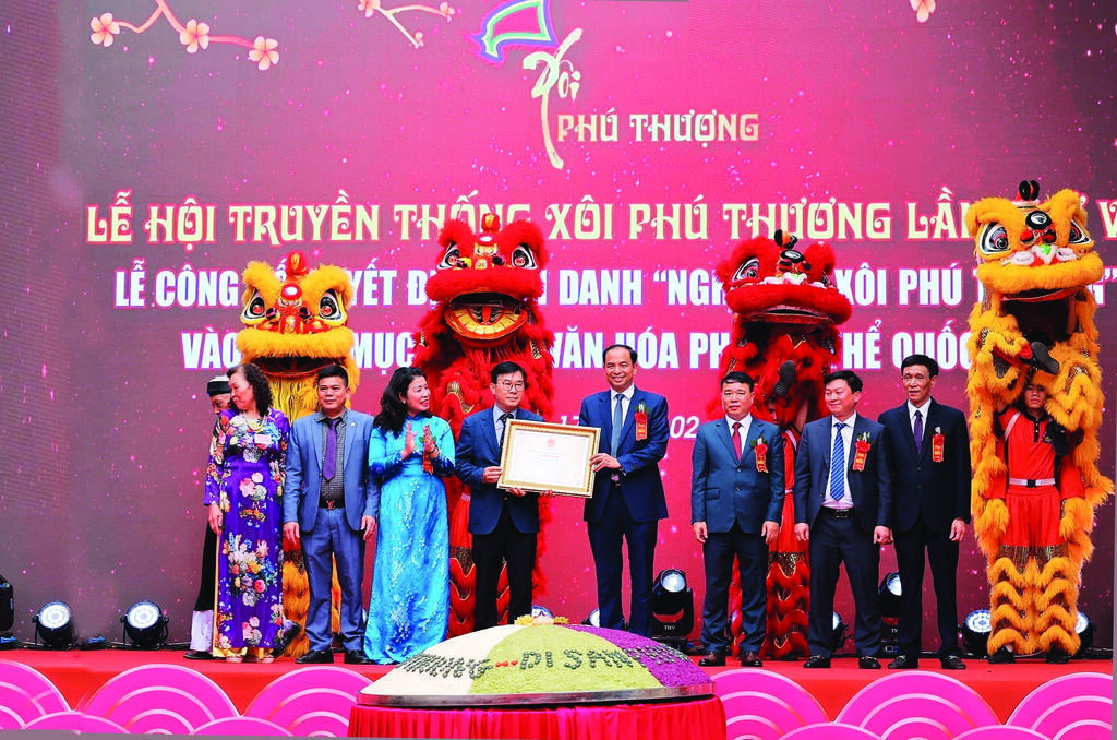 | Cérémonie pour l’inscription de l’artisanat du riz gluant de Phu Thuong sur la liste du patrimoine culturel immatériel national. |