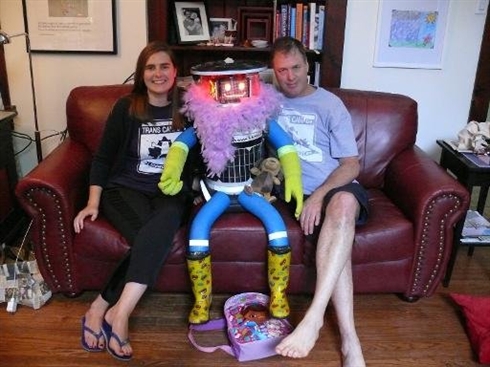| Le Dr. Frauke Zeller de l'Université Ryerson et le Dr. David Harris Smith de l'Université McMaster, le père et la mère du robot-autostoppeur hitchBOT |