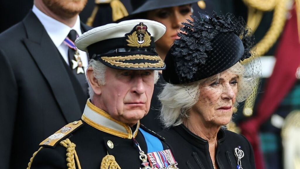 | Le roi Charles III et son épouse la reine consort Camilla, lors d'une cérémonie après la mort de la reine Elizabeth II, le 19 septembre à Londres. |