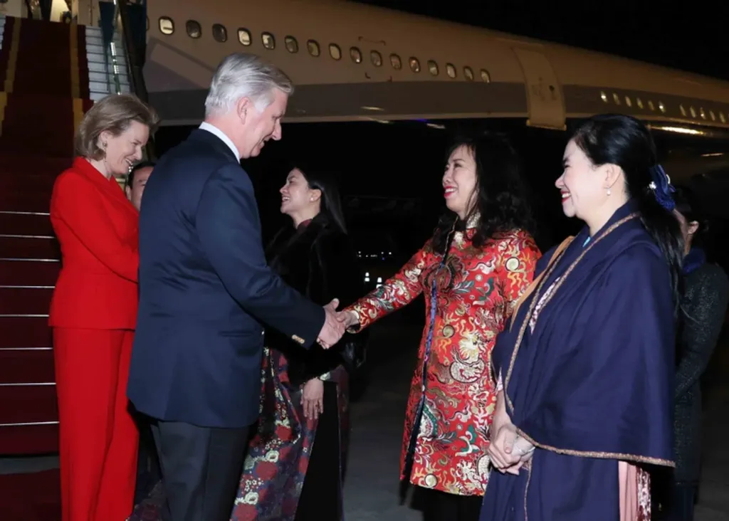 Le roi et la reine des Belges ont été accueillis à l'aéroport international de Nôi Bài à Hanoï par, entre autres, la vice-présidente du Bureau présidentiel Phan Thi Kim Oanh, la vice-ministre des Affaires étrangères Lê Thi Thu Hang et l’ambassadeur du Vietnam en Belgique, Nguyên Van Thao.