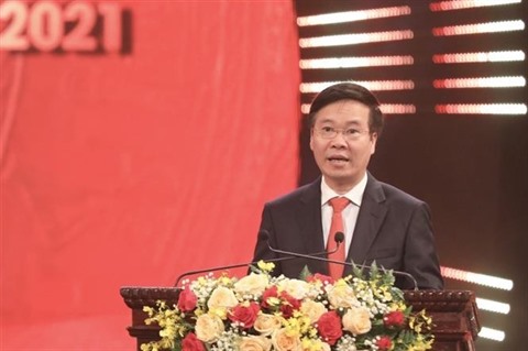 | Vo Van Thuong, membre du politburo et membre permanent du secrétariat du Comité central du Parti communiste du Vietnam, lors de la cérémonie de remise des prix "Marteau et Faucille d’or" 2021. |