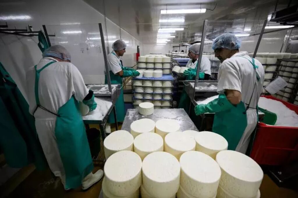 | Des employés travaillent dans la laiterie des Vernières, qui produit du fromage de roquefort, à Villefranche-de-Panat, dans le Sud de la France, le 11 mars. |