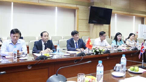 | Le ministre vietnamien de la Santé par intérim, Nguyên Thanh Long (droite), et l'ambassadeur du Royaume-Uni au Vietnam, Gareth Ward, le 15 juillet à Hanoï. |