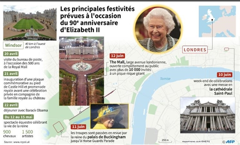 | Les principales festivités prévues à l'occasion du 90e anniversaire d'Elizabeth II. Photo : AFP/VNA/CVN |