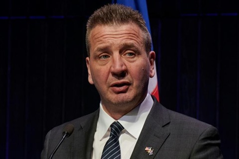 | Le ministre islandais des Affaires étrangères, Guðlaugur Thór Thórdarson, lors d'une conférence de presse, à Reykjavik, le 18 mai. |