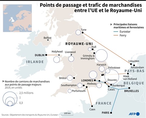 Contrairement à l'UE, le gouvernement britannique a décidé de mettre en oeuvre graduellement les contrôles douaniers, qui ne concerneront toutes les marchandises qu'à partir de juillet.