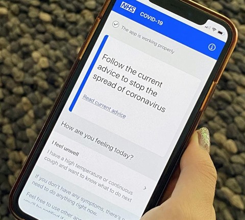 | La nouvelle application gouvernementale NHS COVID-19 sur une image publiée par le ministère de la Santé, à Londres le 4 mai. |