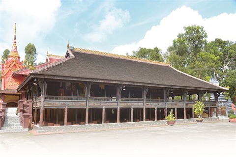 | Le sala en bois de 100 ans au milieu de la pagode Bupharam (ou Chot), dans la province de Bac Liêu (Sud). |