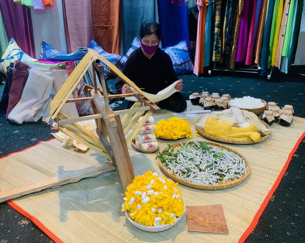 | Un stand de présentation de la fabrication de la soie traditionnel du Vietnam. |