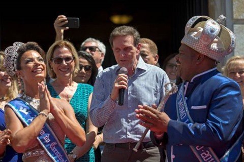 | Le maire de Rio, Marcelo Crivella, lors de la cérémonie d'ouverture du carnaval, le 9 février. |