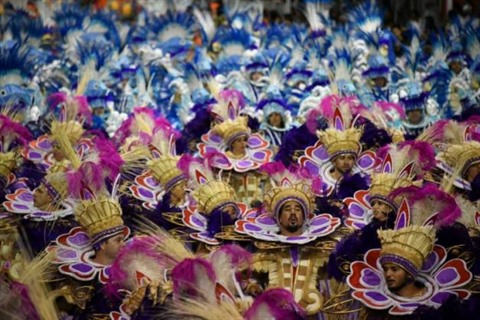 | Des danseurs de samba au carnaval de Sao Paulo, au Brésil, le 11 février. |