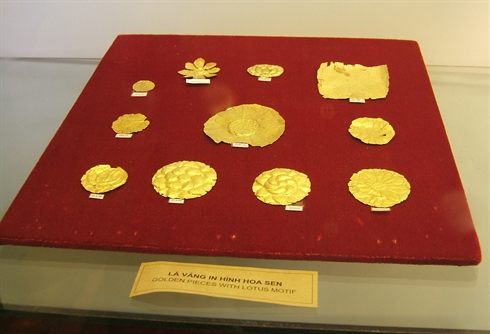 Parmi eux, le plus original est constitué de 265 morceaux de reliefs raffinés en or, chacun représentant une période prospère. Outre les morceaux d’or aplatis et en forme de fleurs, les archéologues ont découvert des morceaux d’or gravés représentants une personne à plusieurs têtes et plusieurs mains, mais aussi un homme-singe. Ils estiment que ce serait des personnages issus de l’épopée Ramayana (Inde). Les archéologues ont aussi mis au jour une boîte en argent, de 18 cm sur 9 cm, gravée d’un lion à longue crinière. Les motifs de décoration de l’objet, jamais observés dans les vestiges archéologiques du pays, demeurent inconnus.