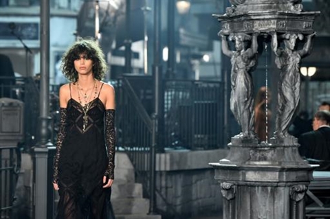 Dans le décor d'un "Paris idéalisé, reconstitué" selon les mots du directeur artistique de la griffe Karl Lagerfeld, au son d'un duo de jazz fusion, les silhouettes se succèdent, mules aux pieds, sacs en forme de caméra Super 8, chevelure de lionne choucroutée à la Bardot, et allure décidée.
