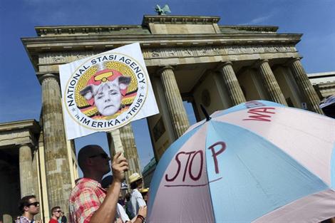 | Manifestation en Allemagne contre les écoutes de la NSA, soupçonné d’avoir espionné Angela Merkel. |