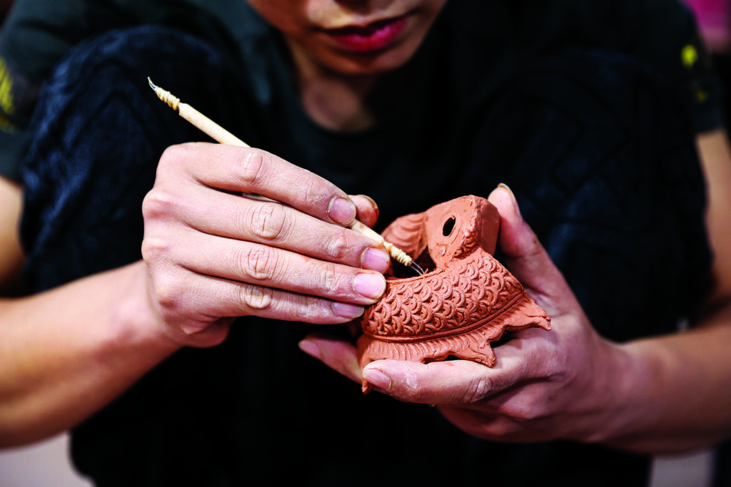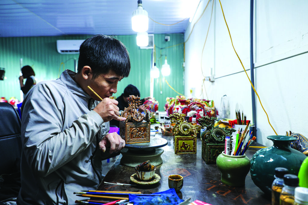 | Les artisans mettent les bouchées doubles afin de finaliser leurs produits pour le Nouvel An lunaire. |