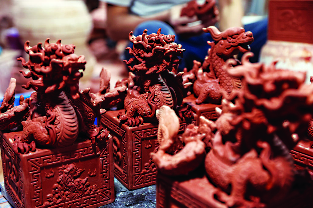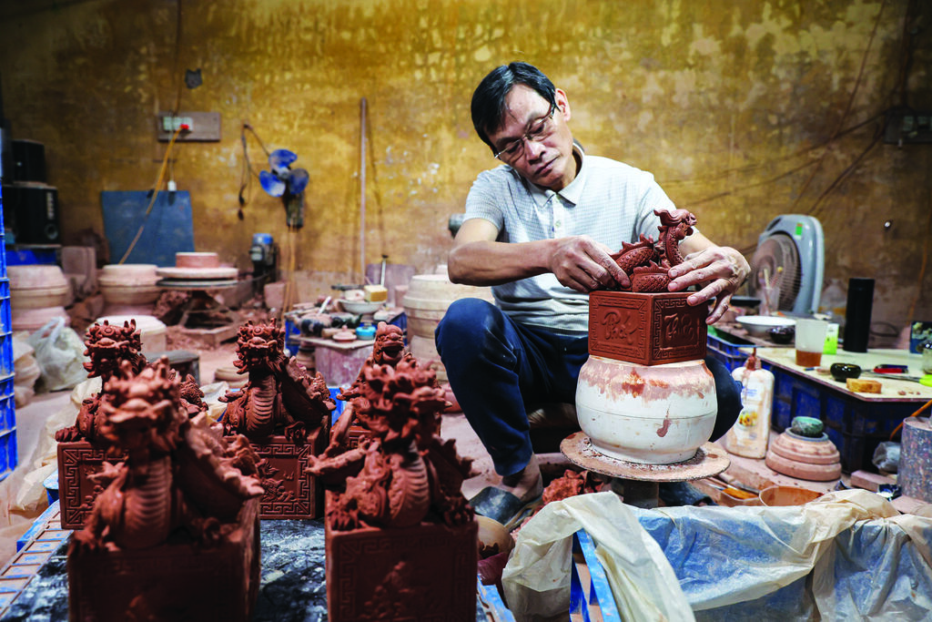 Pham Viêt Khoa, un artisan qui a consacré plus de la moitié de sa vie à travailler la céramique dans le village de Bát Tràng, explique que la fabrication nécessite de nombreuses étapes minutieuses. Chaque produit traverse un processus de création de 99 jours, depuis les premiers dessins de conception jusqu’à l’achèvement, avec 24 étapes de fabrication rigoureuses où aucune erreur n’est permise.