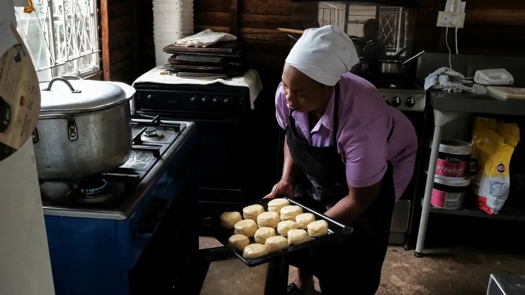 | Veronica Makonese enfourne ses scones, à Harare. |