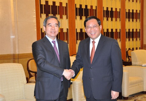 | Nguyên Van Binh (gauche) et Li Qiang à Shanghai. |