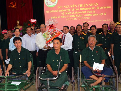 À l’occasion de la Journée des Invalides de guerre et des Morts pour la Patrie (27 juillet), le secrétaire du Comité du Parti de Hô Chi Minh-Ville, Nguyên Thiên Nhân, s'est rendu dimanche 26 juillet dans trois centres de soin des invalides et militaires malades à Hà Nam (Nord).