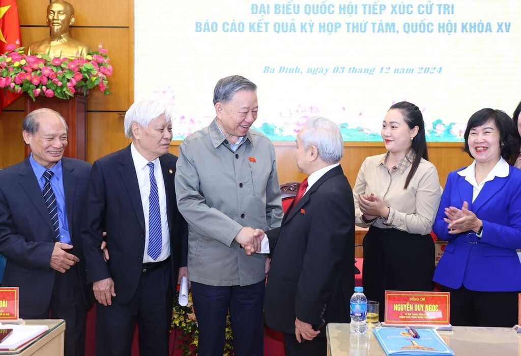 | Le secrétaire général du Parti, Tô Lâm lors de sa rencontre le matin du 3 décembre avec des électeurs de Hanoï,. |