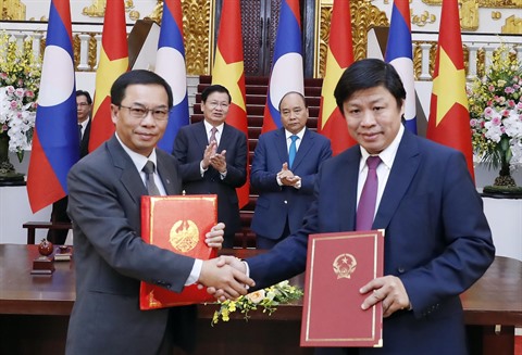 | Les Premiers ministres Nguyên Xuân Phuc, et son homologue laotien Thongloun Sisoulith, témoignent de la signature de coopération entre les ministères des deux pays. |