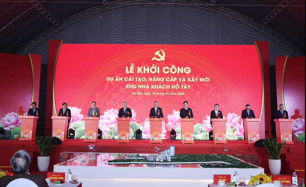 | Le secrétaire général du Parti communiste vietnamien, Tô Lâm (centre), assiste à la cérémonie de mise en chantier de la zone de maisons d'hôtes à Hanoï. |