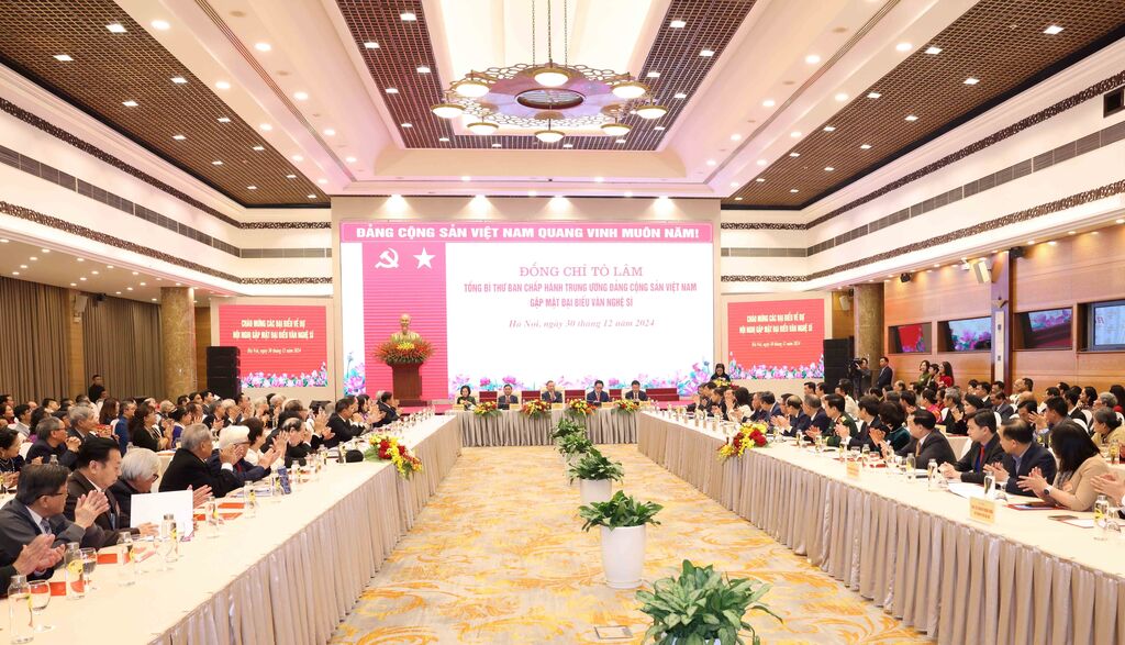 Lors de la rencontre, le secrétaire général Tô Lâm a affirmé que le Parti et l'État accordent toujours une attention particulière aux écrivains et aux artistes, lançant de nombreuses résolutions, mécanismes et politiques pour créer des conditions et un espace favorables au développement de la littérature et des arts.