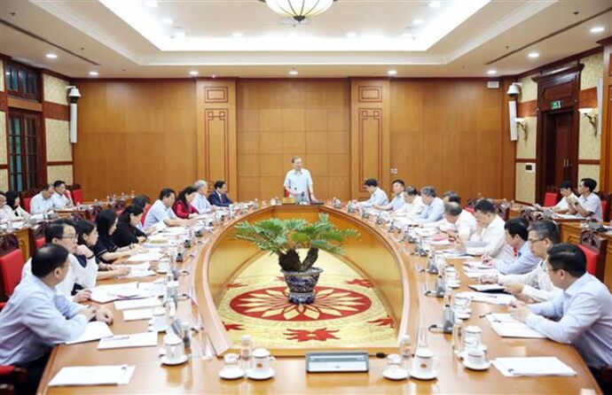 Le leader du PCV a mis en exergue plusieurs questions d’intérêt, notamment l’amélioration de l’efficacité du modèle d’administration locale à deux niveaux, ainsi que la poursuite de la réforme salariale liée au contrôle de l’inflation... Il a également rappelé la Résolution N°72 sur le renforcement de la protection et des soins de santé de la population, indiquant que de nombreuses orientations et politiques de percée seraient mises en œuvre, avec une attention particulière accordée à la prévention des maladies, au renforcement du système de santé de base et à l’adoption de mesures visant à réduire le fardeau financier des patients.