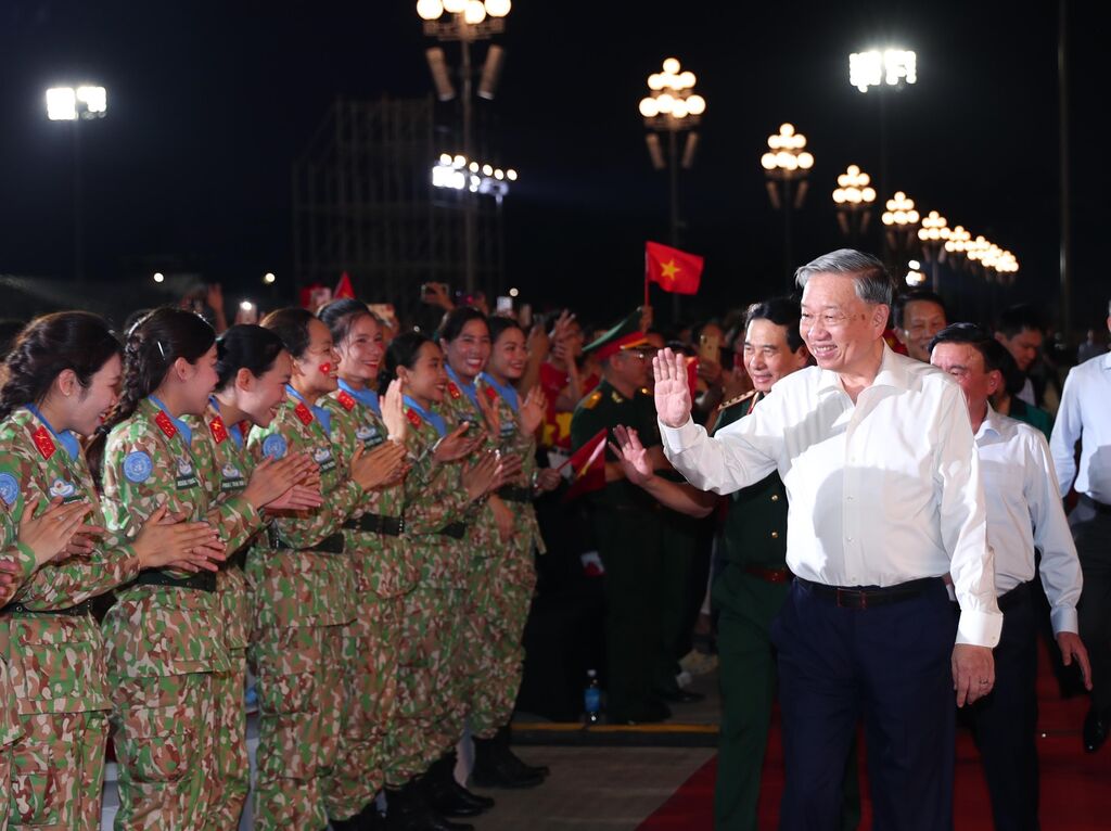 Le secrétaire général du Parti communiste du Vietnam et secrétaire de la Commission militaire centrale, Tô Lâm, a assisté à l’événement à Hanoï, tandis que le Premier ministre Pham Minh Chinh à Huê et le président de l’Assemblée nationale, Trân Thanh Mân, à Hô Chi Minh-Ville.