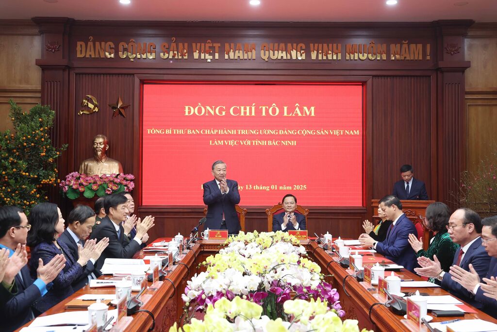 | Le secrétaire général du Parti, Tô Lâm, travaille avec le Comité du Parti de la province de Bac Ninh. |
