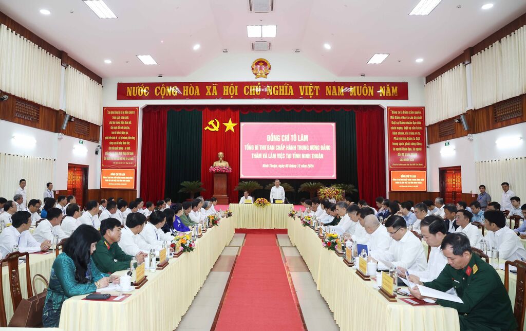 Tô Lâm a salué les efforts et les réalisations obtenus par l'organisation du Parti, les autorités et la population de Ninh Thuân, tout en proposant des orientations de développement importantes.