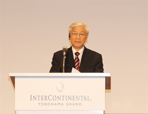 | Nguyên Phu Trong s'exprime lors du Forum de coopération, d’investissement, de commerce et de travail du Vietnam-Japon. |