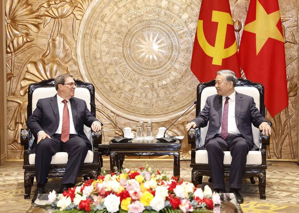 | Le secrétaire général Tô Lâm (droite) et l’envoyé spécial du Parti et de l’État cubains, Bruno Rodriguez Parrilla, le 2 février à Hanoï. |