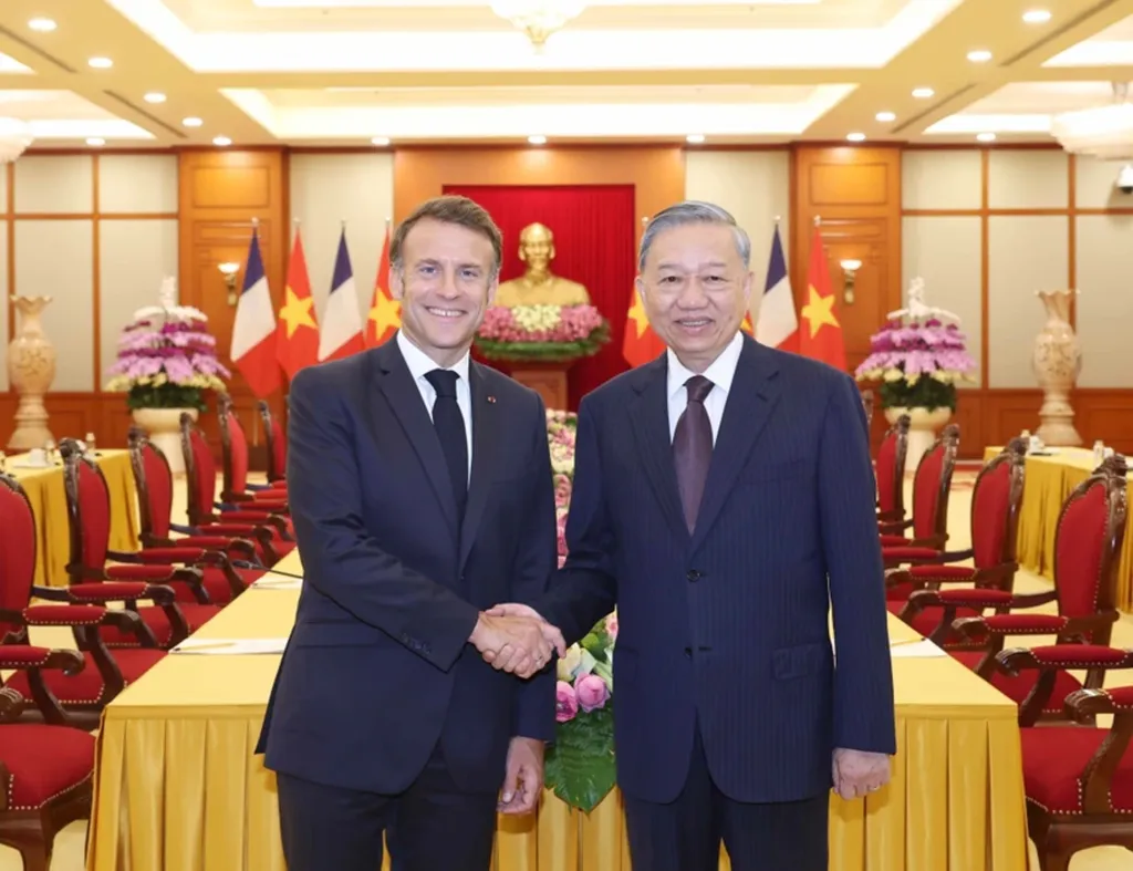 Le secrétaire général Tô Lâm a souligné que la France est le premier partenaire stratégique global du Vietnam au sein de l’Union européenne (UE). Il a affirmé la volonté du Vietnam de renforcer une coopération multiforme avec la France, soutenant son rôle et sa voix sur les scènes régionale et mondiale. Il a proposé que les deux pays continuent de tirer parti de leurs convergences pour traiter harmonieusement les questions régionales et internationales.