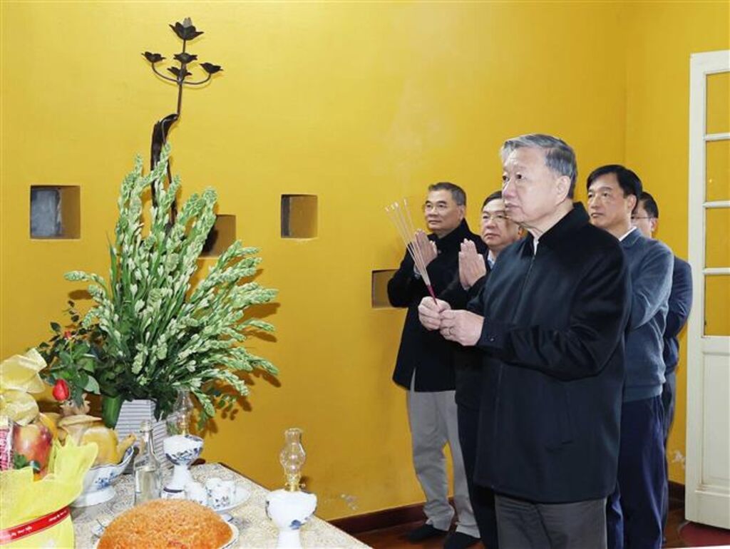 | Le secrétaire général du Parti, Tô Lâm, offre de l’encens au Président Hô Chi Minh dans la Maison 67, qui lui est dédié, dans le Palais présidentiel. |
