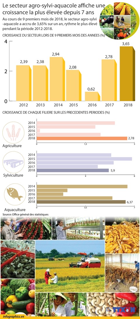 Au cours de neuf premiers mois de 2018, le secteur agro-sylvi-aquacole a accru de 3,65% sur un an, rythme le plus élevé pendant la période 2012-2018.