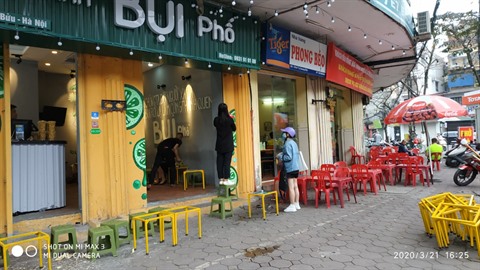 | D'habitude très animée, une cafétéria à la rue Ta Quang Buu à l'arrondissement de Hai Bà Trung est maintenant très calme. |