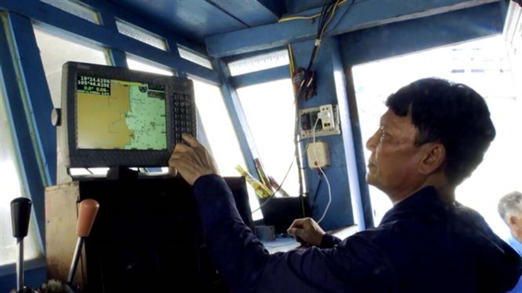 | Installation d'un équipement de surveillance d'un bateau de pêche à Thanh Hoa (Centre). |