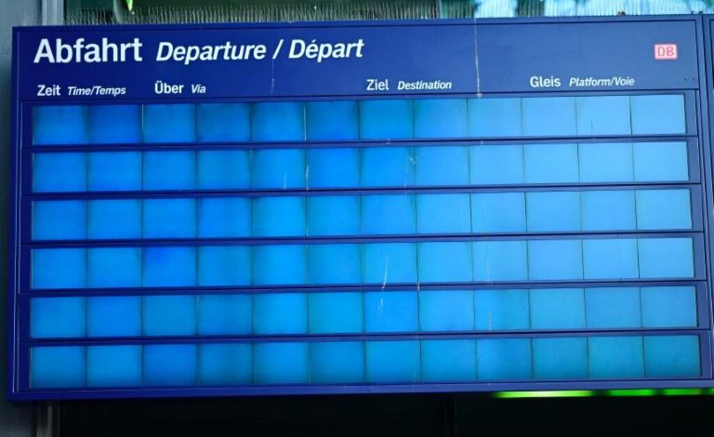| Panneau d'affichage sans train au départ à la gare centrale de Berlin à cause de la grève dans les transports, le 27 mars. |