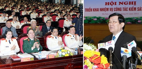| Le président Truong Tân Sang à la conférence sur la mise en œuvre des tâches du Parquet populaire supprême en 2014. |