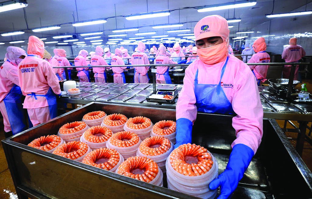 | Transformation de crevettes pour l’exportation chez la Société par actions de produits aquatiques Minh Phú, basée dans la ville de Cân Tho (Sud). |