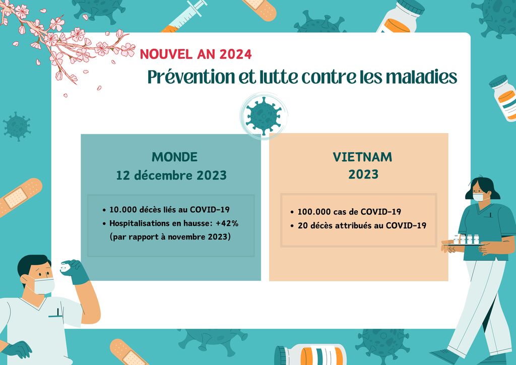 Le chef adjoint du Département général de médecine préventive, Hoàng Minh Duc, souligne qu'en 2023, le Vietnam a enregistré 172.000 cas de COVID-19, dont 43 décès, comparativement à 369.483 cas et 151 décès en 2022. La dengue, une maladie grave transmise par le moustique tigre, a provoqué 181.000 cas et 31 décès en 2023. Les zones présentant un taux d'infection élevé sont Hô Chi Minh-Ville, Dông Nai, Binh Duong (Sud), Dà Nang, Gia Lai, et Binh Thuân (Centre).