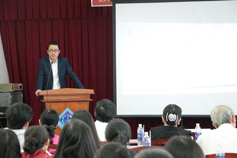 | M. Jean-Philippe ROUSSE, attaché à la coopération pour le français et directeur délégué de l’antenne d’HCM-Ville de l’Institut français, prend sa parole au séminaire, le 12 mars à Cân Tho. |