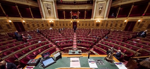 | L'hémicycle du Sénat français à Paris, en novembre 2016. |