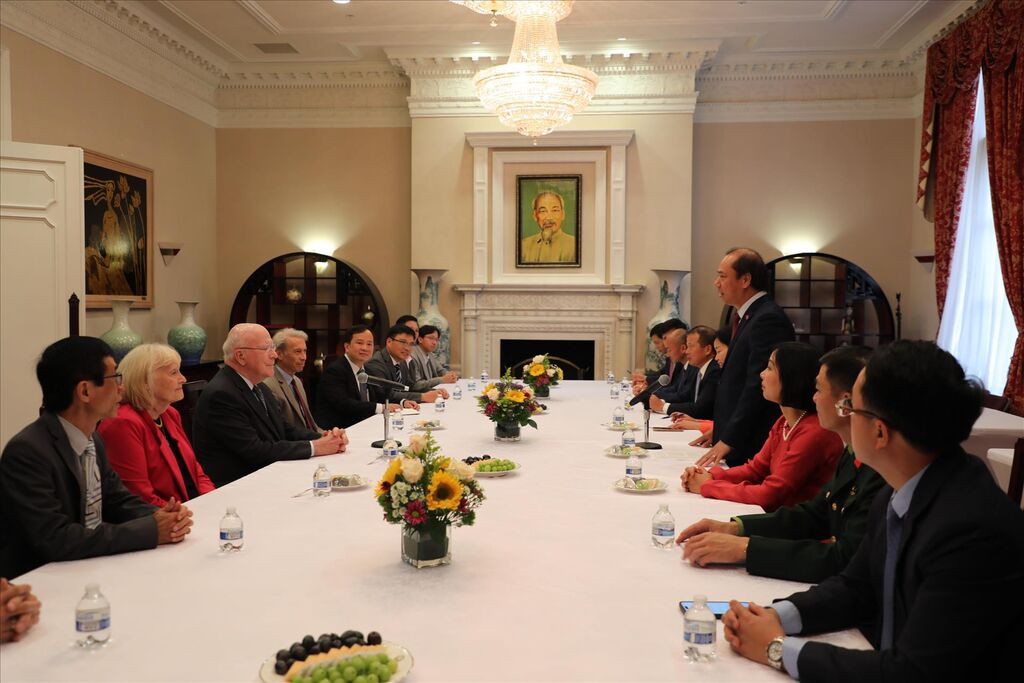 | L'ambassadeur Nguyên Quôc Dung (debout) s'exprime lors de la rencontre, le 25 octobre. |