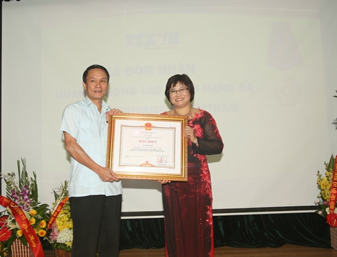 | Cérémonie de remise de l'Ordre du Travail de 3e classe au Courrier du Vietnam, le 25 septembre à Hanoi. |