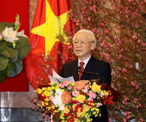 | Le secrétaire général du Comité central du PCV et président Nguyên Phu Trong formule ses vœux du Têt, le 1er février. |