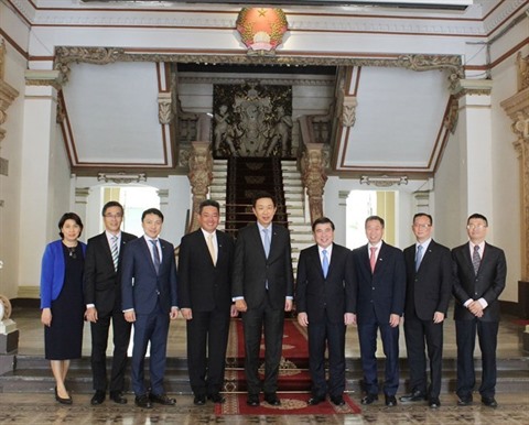 | Le président du Comité populaire de Hô Chi Minh-Ville, Nguyên Thanh Phong (4e à droite), et des responsables du groupe singapourien Keppel. |